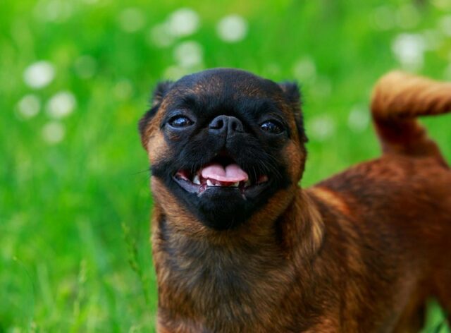 The Brussels Griffon is one of the happiest dog breeds and a playful breed by nature. Additionally, their cheeky behavior is sure to make you smile.