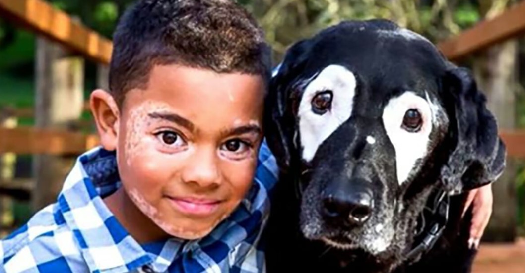 Then everything changed when his mom found a picture of a white-eyed black Labrador retriever called Rowdy, a black Labrador Retriever.