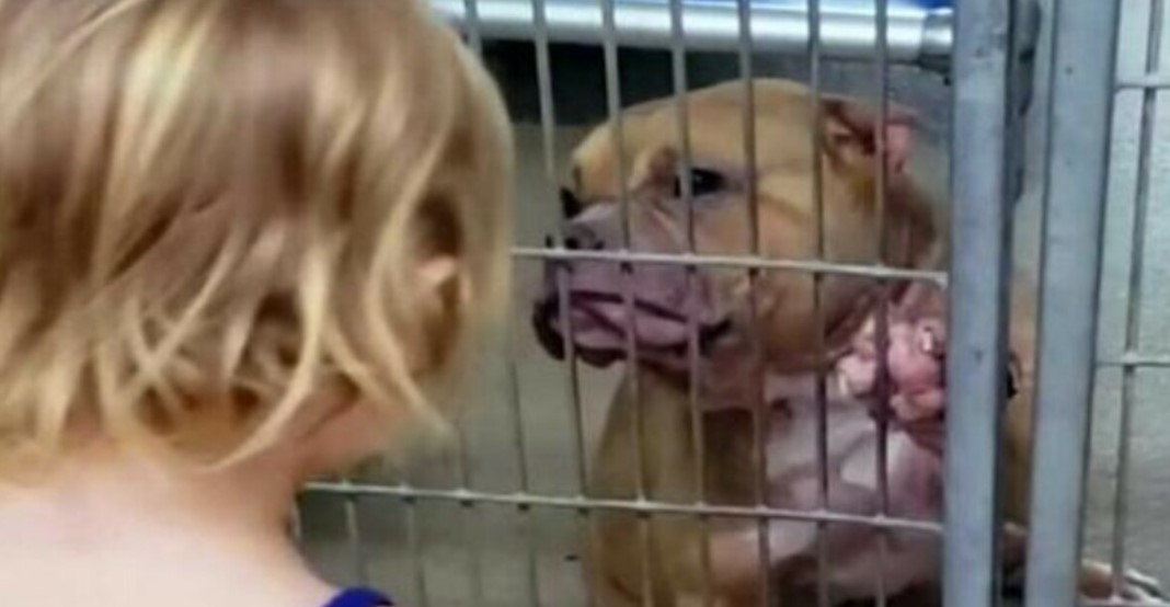 When “G,” an adorable two-year-old girl, met a pitbull at a shelter she went to with her mother, it was love at first sight. The child immediately fell for the sick dog and convinced her mother to bring the animal home as a new addition to the family.