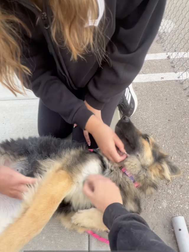 Just in time, the compassionate team at FurryTail Endings Rescue heard Aurora’s story. When they arrived at the shelter and saw her for the first time, it was as if Aurora was silently pleading for help. Her eyes were filled with tears. The team knew she had suffered trauma—likely at the hands of a man, given how she flinched from male rescuers. Gently and patiently, they guided her out of her kennel. As soon as she stepped outside, she melted into their arms, finally feeling the warmth of love again. From that moment forward, they promised she would never be hurt again.