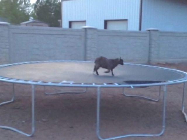 The playful goat pranced across the trampoline with impressive agility, showing off his athleticism as he effortlessly bounced around. His small, nimble hooves seemed perfectly suited for the trampoline’s surface as he leaped and bounced higher with every jump. It was a moment of pure happiness, and the little goat was clearly having the time of his life.