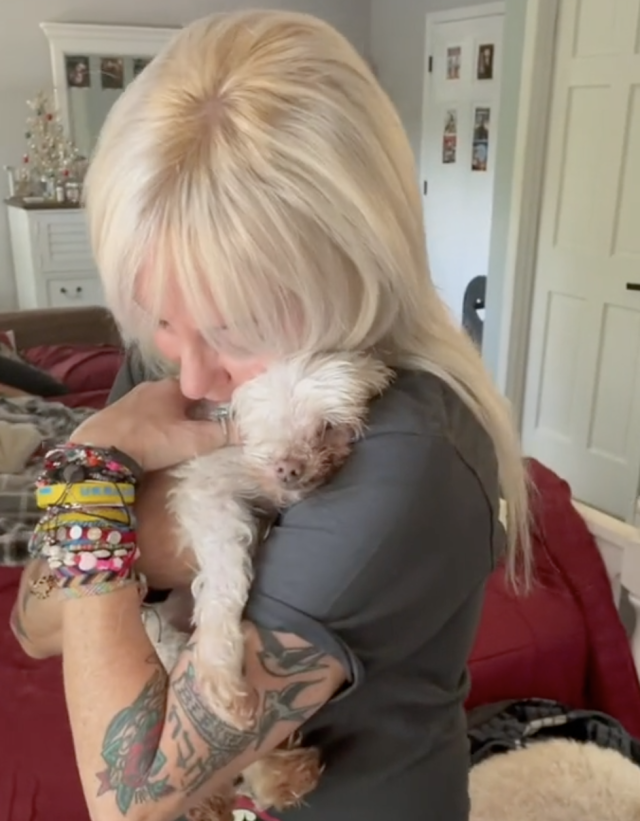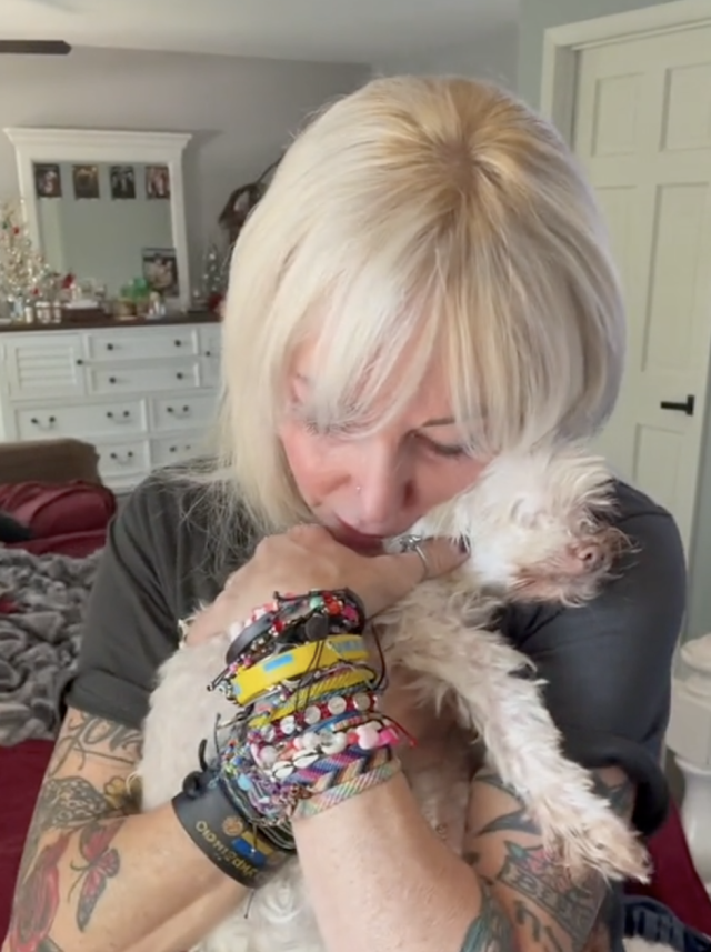 Beanie is constantly at Julie’s side. “She’s in my arms pretty much 24 hours a day. Wherever I go, she goes,” Julie said. The dog who once rejected love now gives it freely—in her own gentle way.