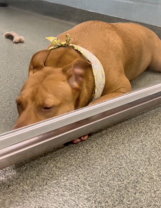 As the days turned into weeks and the weeks into months, Bella’s outlook began to dim. More than 100 days passed without anyone choosing her. She spent her time confined to a kennel, and the lack of interaction and stimulation slowly chipped away at her spirit. By day 130, the once-playful dog appeared defeated. As seen in the video below, Bella no longer showed interest in toys, attention, or playtime. Instead, she lay silently in her kennel, gazing off in silence.