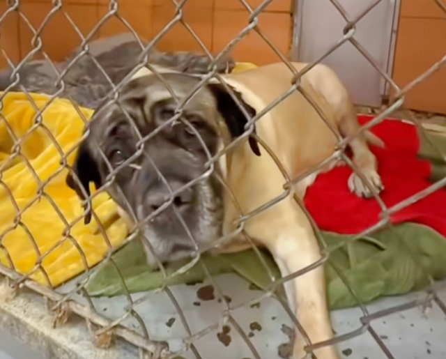 Too many dogs spend their lives behind bars, never knowing the warmth of a home or the kindness of a human touch. Bertha, a gentle seven-year-old Mastiff, was one of those souls. For years, she was trapped inside the cold confines of a puppy mill, her purpose limited to producing litter after litter. When her body could no longer keep up, she was tossed aside, discarded like she didn’t matter.