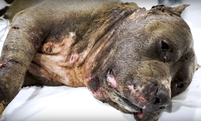 Betsy’s life began in heartbreaking circumstances. Her owner was cruel and cared only about one thing—forcing Betsy into dog fights. However, fighting was never in Betsy’s gentle nature. She had a kind, loving spirit, but instead of being treated with care, she was used as a bait dog. When Betsy was finally rescued, her condition was so severe that it was uncertain whether she would survive. Her body was riddled with wounds, and infection became the greatest concern for the medical team working tirelessly to save her.