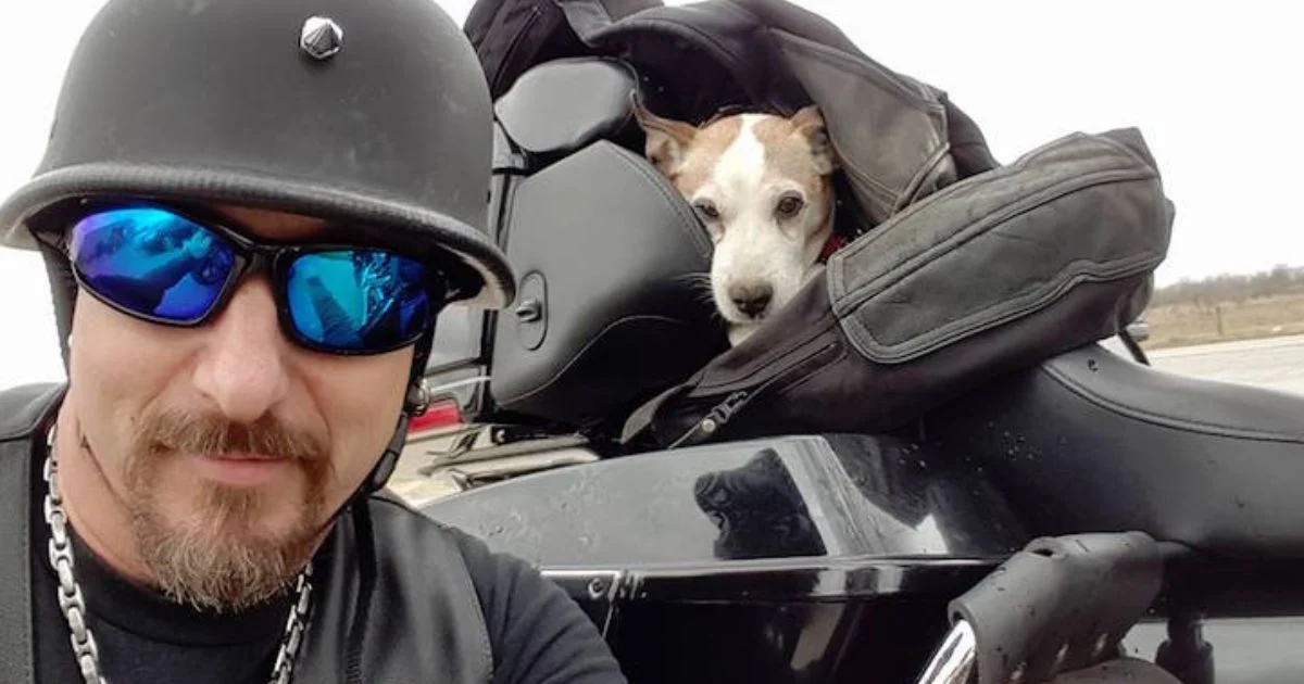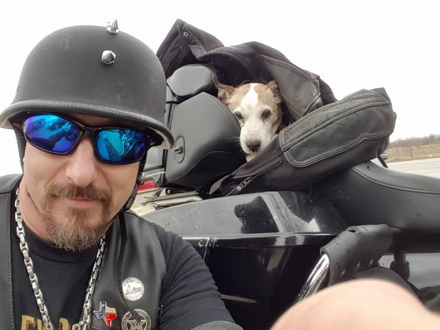 Turnbow wanted to earn the pup’s trust, so he let the dog adjust to the motorcycle’s vibrations before taking off. Once the dog seemed calm, he gently placed him inside his bag and got back on the road.