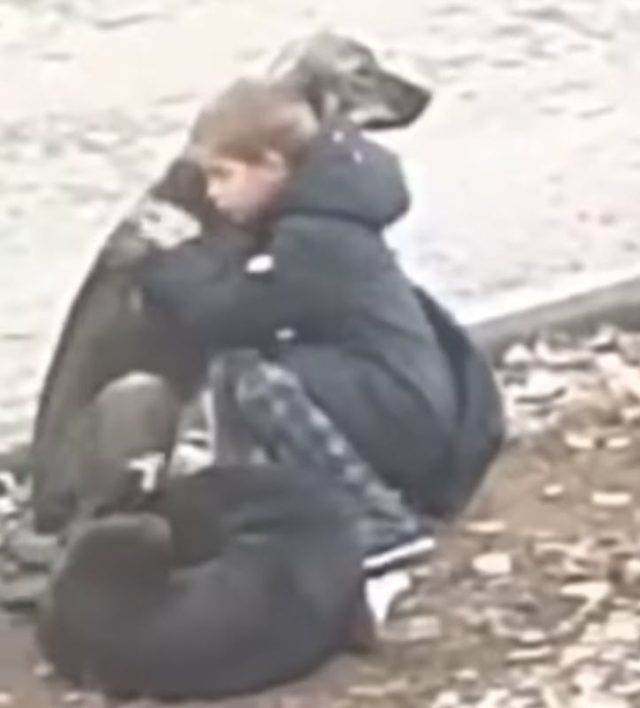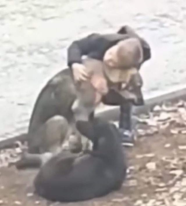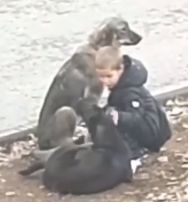 Unbeknownst to Ibrahim, his sweet gesture didn’t go unnoticed. A stranger in a nearby building happened to witness the touching moment and captured it on video. In the clip, you can see the little boy hugging the dogs before walking away, only to pause and turn back for another embrace.