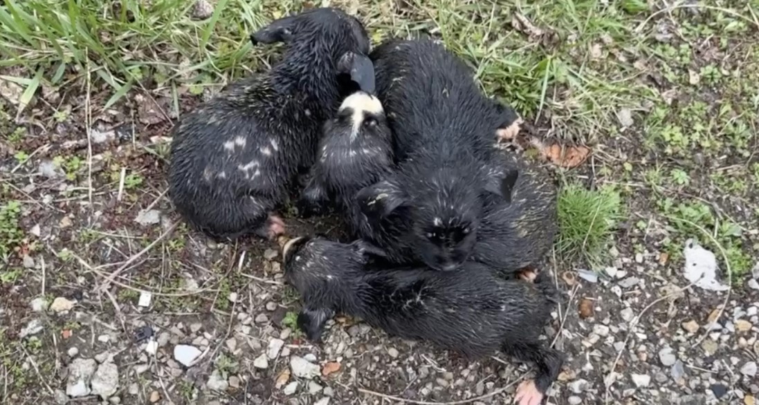 “We spotted the first four,” Lochmann said. “It had been raining so hard that morning, so they were soaked, and they were cold. They were just shivering and whimpering. It was the most heartbreaking thing to walk upon.”