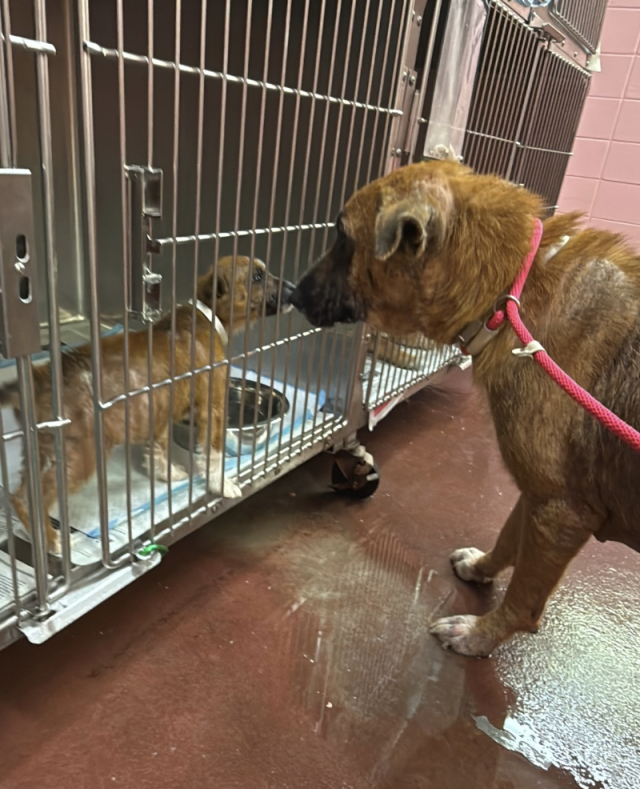 Determined to bring them back together, Madeline carried out a quiet promise. She took Chicha to the area where Carly was housed. The moment the mother saw her daughter, she darted toward her kennel. The pair touched noses through the metal bars; their joyful reunion hindered only by the enclosure that separated them. Carly pressed her paw through the gate in a silent gesture of relief and love.