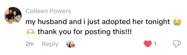 “My husband and I just adopted her tonight. Thank you for posting this!!!”