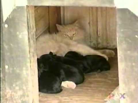 In South Carolina, a group of neighbors was in disbelief when they saw a cat carrying a puppy in her mouth from one end of the trailer park to the other. The locals noticed that the neighbor’s cat, Miss Kitty, would grab a puppy from the litter and carry it off. But why?