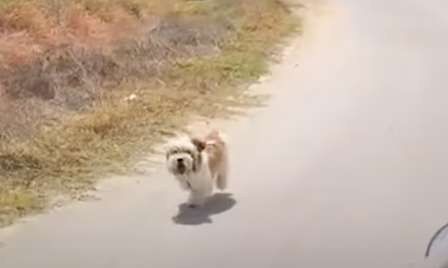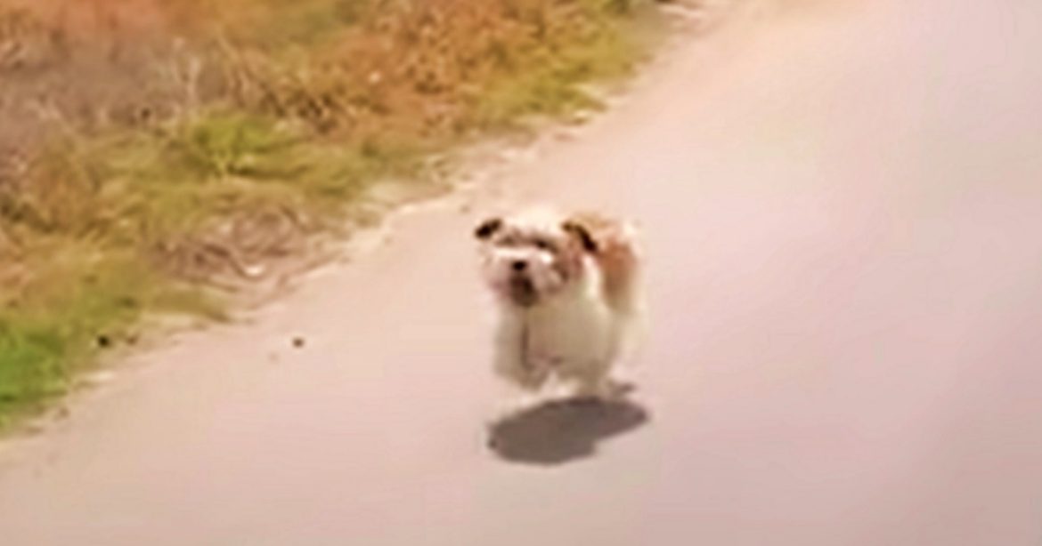 At first, they weren’t sure what to make of the sight. Maybe she belonged to a nearby house. Perhaps she was just being playful. But the longer they watched her chase their car, the more concerned they became. This wasn’t a game—this dog needed help.