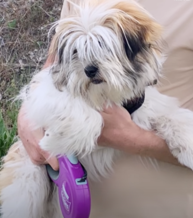 They pulled over and waited. The dog, panting heavily, trotted up to them without hesitation. It was clear she had been on her own for a while. She was filthy, her fur tangled with mats and her body covered with ticks. Her eyes were crusted over, and she looked exhausted.