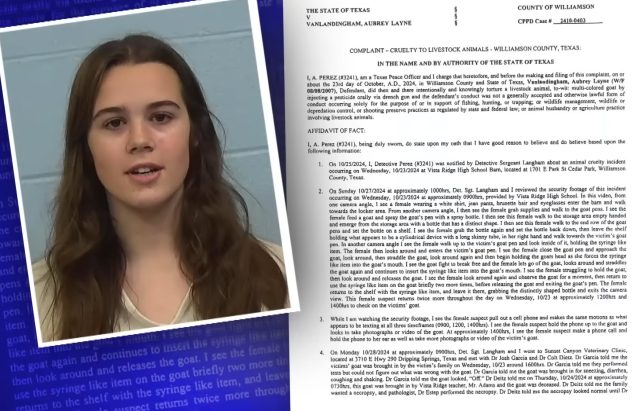 Both Vanlandingham and the goat’s owner were members of Vista Ridge’s Future Farmers of America (FFA) program. Vanlandingham, a cheerleader and recently elected FFA president, was known for showcasing her own goat, Lacey, at competitions statewide. Prosecutors allege she poisoned Willy to secure her own victory at an upcoming event.