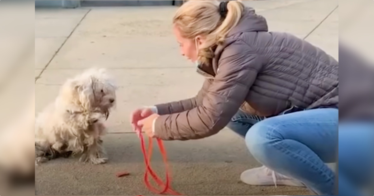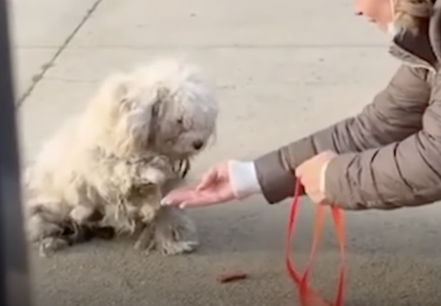 As she knelt to offer him a treat, the dog slowly raised his paw and extended it toward her. It wasn’t out of fear or defense—it was a gesture of trust, a silent greeting. “He lifted his paw to say hello and to give thanks,” the rescuer says in the video. The moment was quiet but powerful. After everything he had endured, he still welcomed kindness.