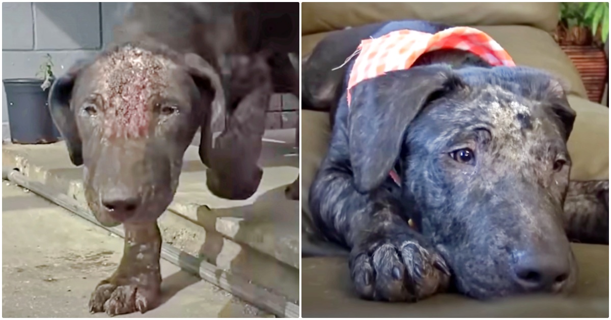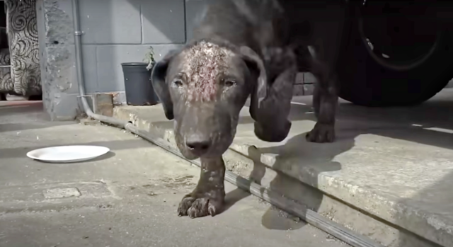 In a gritty corner of the city, surrounded by the whir of tools and the smell of oil, a small, sickly pup sought shelter beneath a parked car. His body was frail, his skin raw and flaking, but even in his suffering, he held onto a glimmer of hope. That hope was rewarded when a young woman—the niece of the local mechanic—noticed the little creature huddled beside the garage and decided to take action.