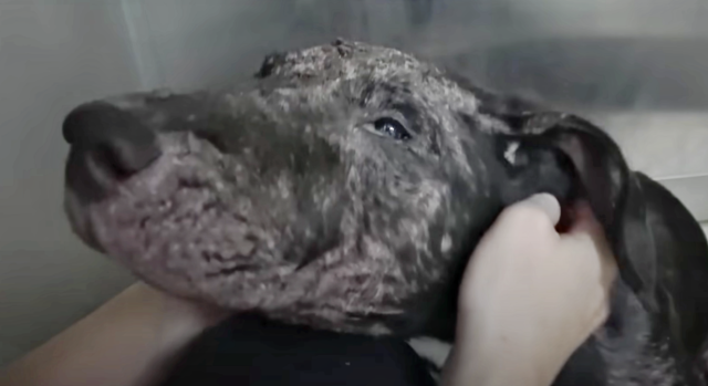Upon arrival, it was clear just how much damage had been done to his body. His skin was rough, covered in crusty patches and sores. But he was in good hands now. The first step in his care was to clean him up. Volunteers knew that with the right treatment, time, and care, this dog could make a full recovery.