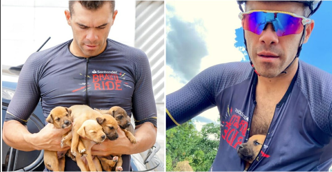 When one cyclist found a group of five puppies who had been abandoned and left for dead, he went above-and-beyond to help them, giving them a ride and helping to find homes.