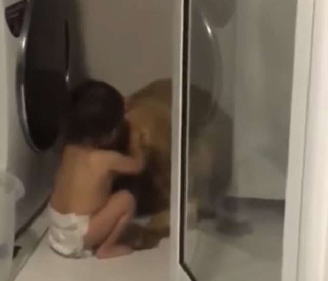 However, what made this moment truly special was the unexpected comfort that came from a diaper-wearing toddler in the household. The child, noticing the distressed dog, sat beside the Golden Retriever, offering comfort in the sweetest way possible. In the short, heartwarming video, the toddler can be seen hugging, patting, and softly talking to the scared pup, offering reassurance through these gentle actions.