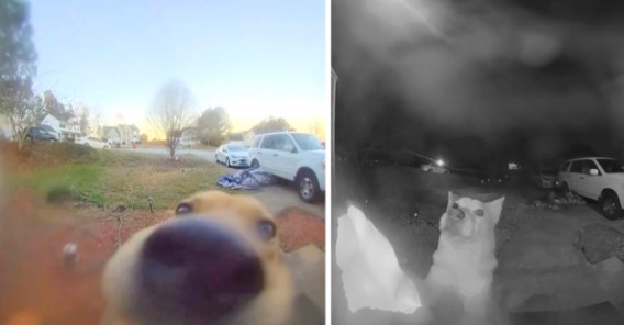 No matter the time of the day, this dog knows he can easily get back in the house whenever he wants by ringing the front doorbell.