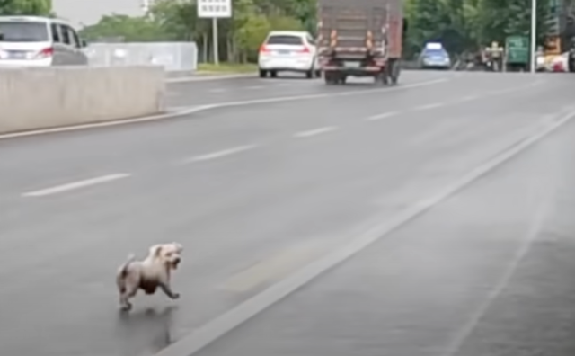 In a heartbreaking moment that left witnesses stunned, a small dog was seen desperately running after a car, refusing to stop after nearly a mile and a half. Onlookers couldn’t understand what drove her to such extremes until they realized she had just been abandoned by the very people she trusted the most.