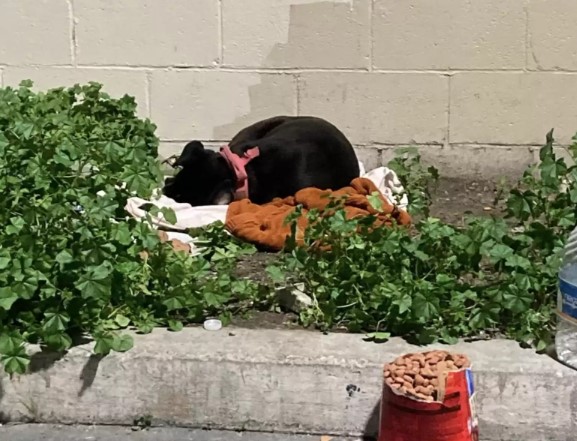 Workers from the neighboring car wash initially saw the dog sleeping on the curb and, when they realized that her kibble supply was low, they set out a new bag of food and called Hall for help.