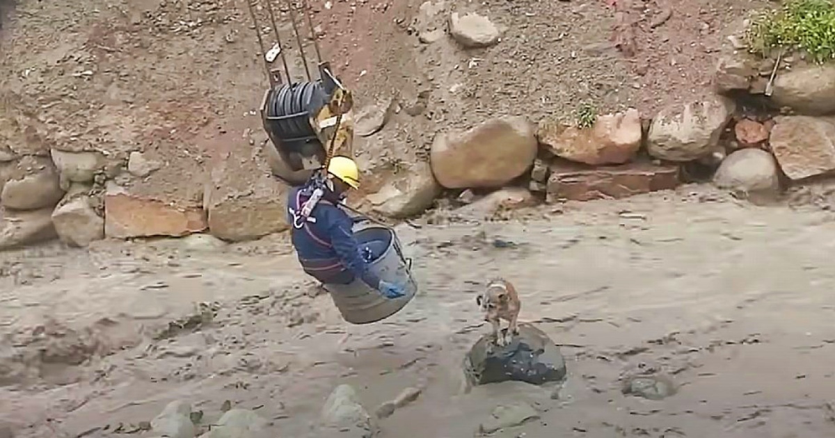 It was an ordinary day at a construction site—until workers spotted a helpless dog trapped in a raging river.
