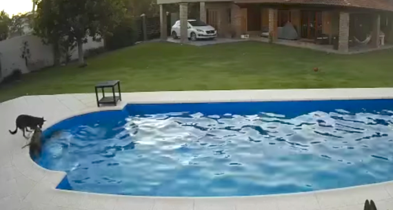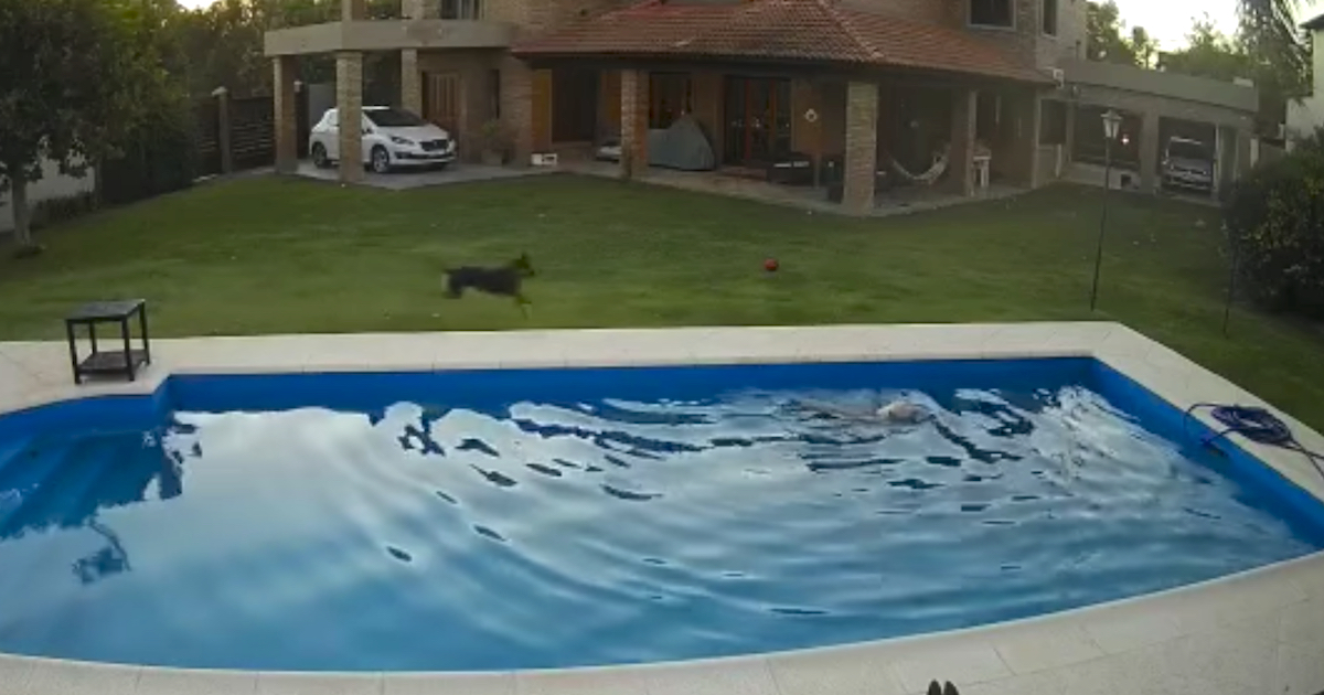 Luna is a 14-year-old senior dog and can’t see as well as before. And she’s much less adventurous now than when she was a younger pup. So Julieta Firpo was taken aback when Luna entered the house soaking wet one day. And following behind came Caipirinha as wet as could be. So Mom checked the surveillance footage to see what had happened.