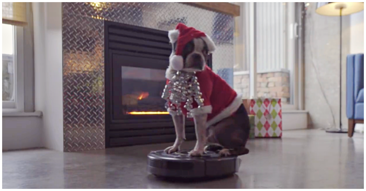 What better way to get into the holiday spirit than to dress up as Santa and take a jolly ride on a Roomba while blasting ‘Donde Esta Santa Claus’ by Augie Rios?