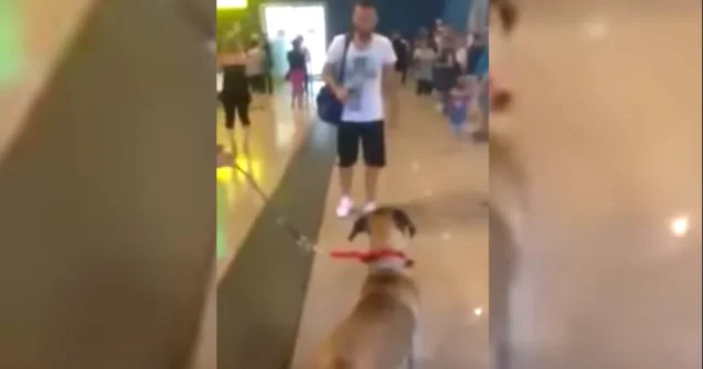 Then, just like magic, the dog’s long-awaited reaction unfolds. Within seconds, the pup begins to whimper and cry, bursting with excitement. He jumps up, showering his owner with kisses, overjoyed to have him back. It’s a scene so touching that it stops everyone in the terminal in their tracks. Strangers gather to witness the heartfelt reunion, smiles spreading across their faces.