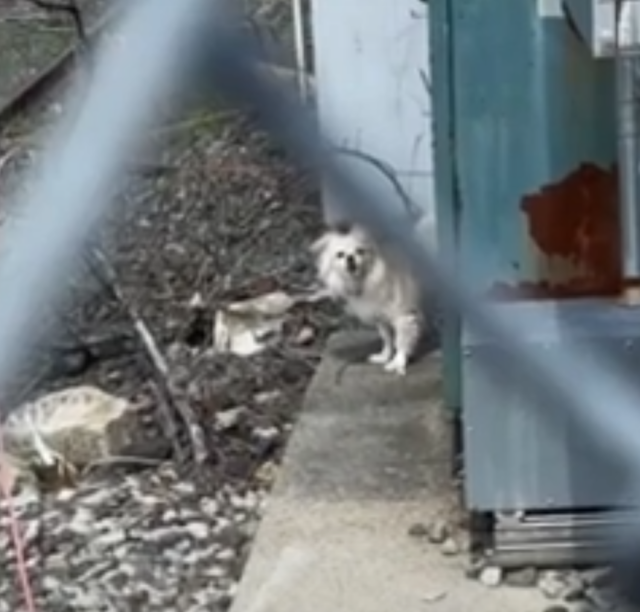 The incident occurred behind the Encore Boston Harbor Casino, in an isolated part of the tracks. The dog, visibly frightened and alone, was found with a chewed leash still attached to the rails, suggesting the pup may have fought to free itself before help arrived.