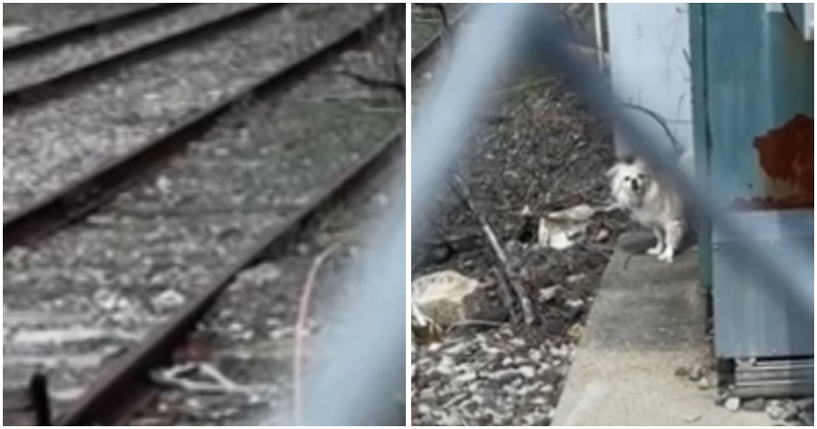 In a shocking and heartbreaking scene, a small dog was discovered tied by its leash to active commuter rail tracks in Everett, Massachusetts—left in a potentially deadly situation.