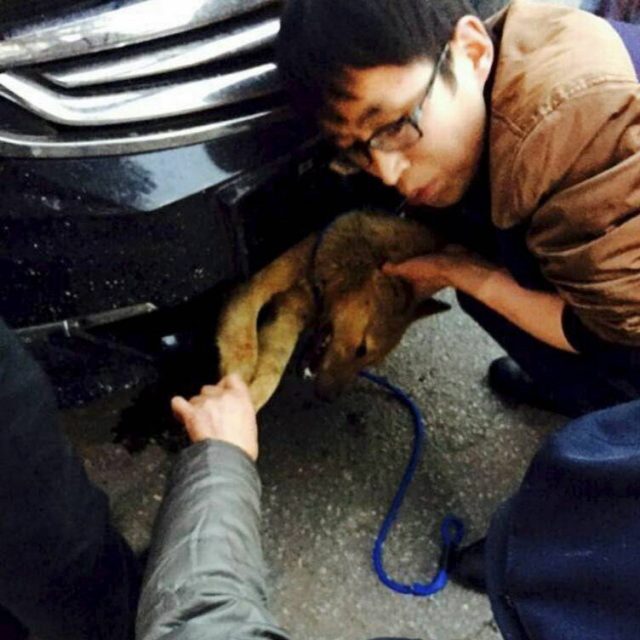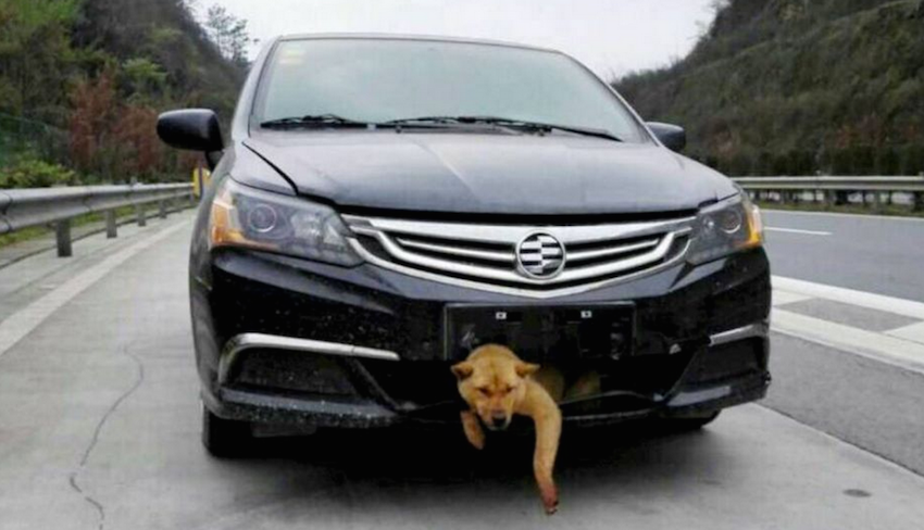 A man in China was 200 miles into his journey when he heard something strange—barking coming from the front of his car. Alarmed and confused, he quickly pulled over to investigate.