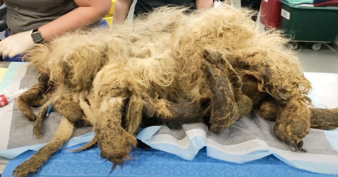 Beneath the matted, unkempt coat was a small dog who had endured years of severe neglect. The extent of her condition was heartbreaking. Her fur was so overgrown and matted that she was almost unrecognizable, weighed down by nearly nine pounds of tangled hair.
