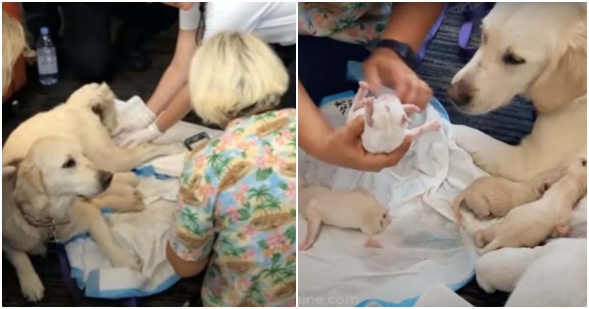 Ellie, a devoted and intelligent Labrador, was traveling with her owner, Diane Van Atter, and her mate, Golden Nugget, when nature took its course. Passengers, initially preoccupied with their phones and flight updates, found themselves witnessing something extraordinary—the miracle of life.