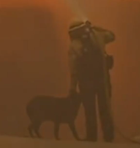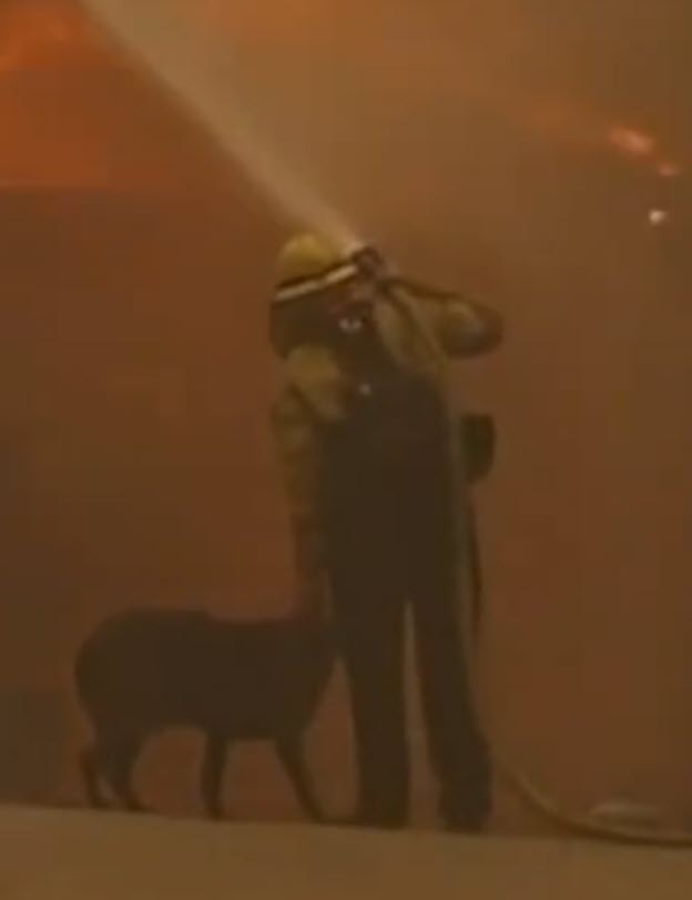 #dog that was wandering the charred streets with one hand, while also working to extinguish the flames engulfing the neighborhood with the other.