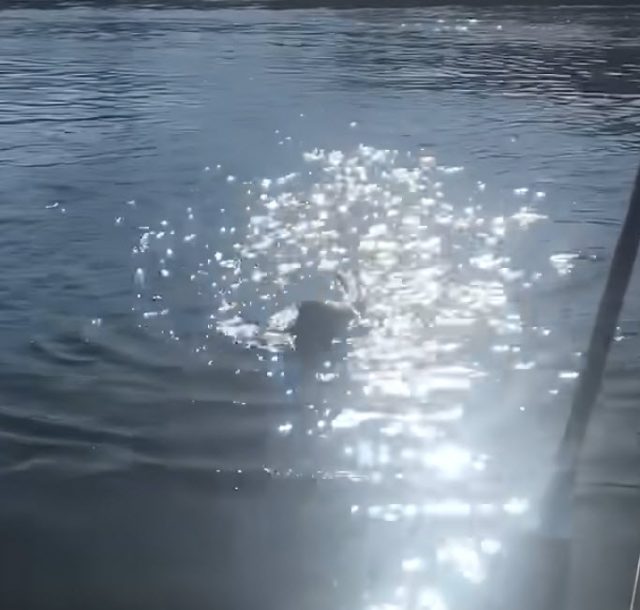 During a vacation in Mato Grosso, Brazil, sports fisherman Renato Borella and his tour guide, Neco, were enjoying a peaceful day on the vast river when they encountered something unexpected. As they rowed their boat through the wetlands, they noticed a black tail swerving agitatedly in the water. At first glance, the men assumed it was a dog struggling to stay afloat, possibly drowning in the river. Without hesitation, Neco quickly threw a lifejacket into the water, hoping to save the distressed creature.