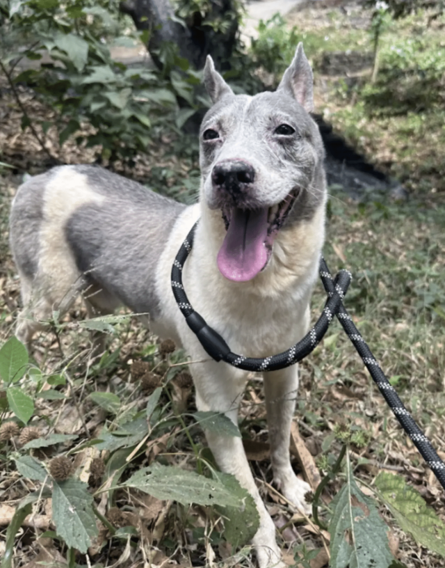 Today, Bruno is no longer the broken soul he once was. He enjoys strolls through wooded paths and finally knows what it feels like to be safe and cared for. Best of all, he has a forever home waiting for him—a family that includes four other senior dogs ready to welcome him with love.