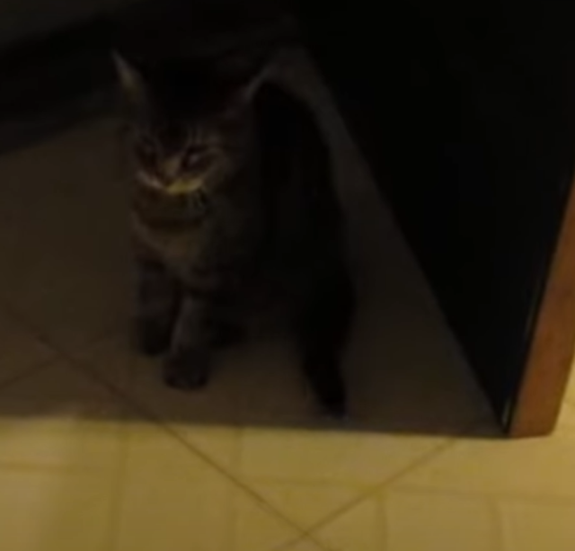 The cat meows.