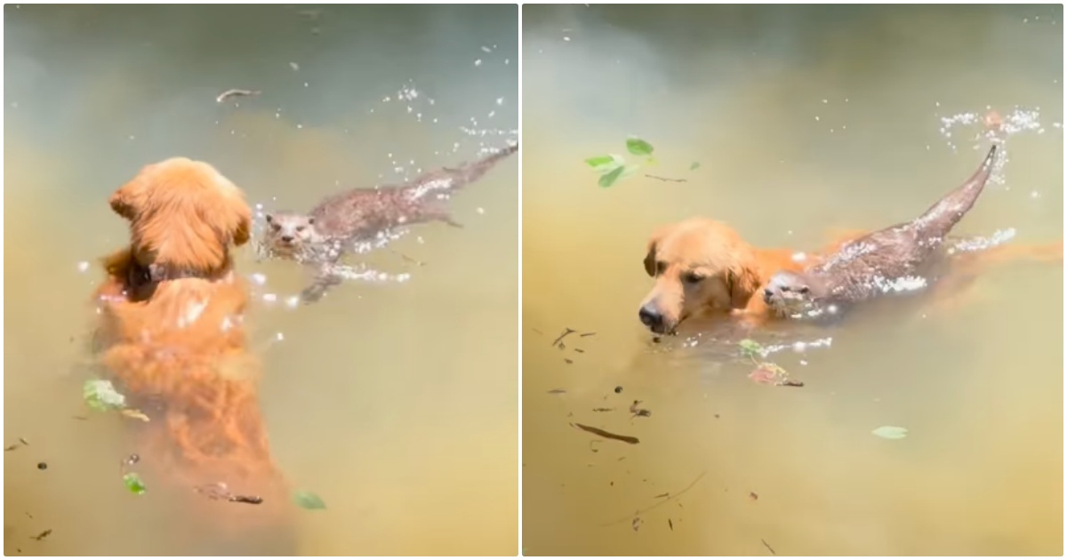 One Golden Retriever recently reminded the world why this breed is so beloved by forming a friendship that defies expectations. A video shared on TikTok and Instagram showcased a Golden Retriever swimming peacefully alongside a playful river otter. Their interactions were so natural and full of joy that the clip quickly went viral, earning the attention of animal lovers across the globe.
