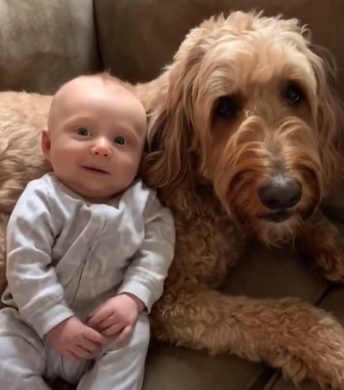 As baby Noah cozies up to Ralph, his mom gently asks the affectionate pup, “Do you love him?” What happens next surprises everyone—Ralph responds with what sounds remarkably close to “I love you” in his own doggy language.