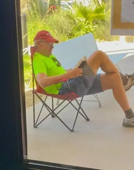 When Elliot was ready for adoption, Dr. Eberhart was determined to be first in line. On the morning of the adoption, shelter staff arrived to find an unusual sight: Dr. Eberhart sitting in a chair outside, reading a book, hours before the shelter’s doors opened.