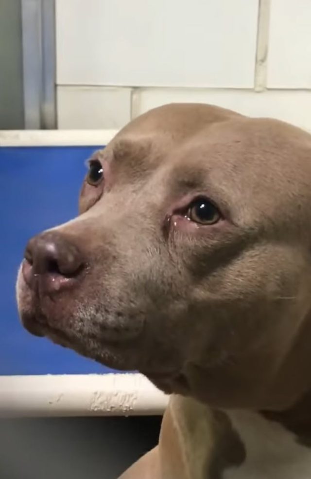 When a red-nose Pitbull named Cinnamon was abandoned at the Charlotte Mecklenburg Animal Care & Control shelter in North Carolina, her sorrow was impossible to miss. She had been dropped off without her puppies, and every time someone approached her kennel, tears pooled in her eyes. Her pain was quiet, but overwhelming. Shelter volunteers couldn’t ignore her sadness, and one in particular decided to take action.