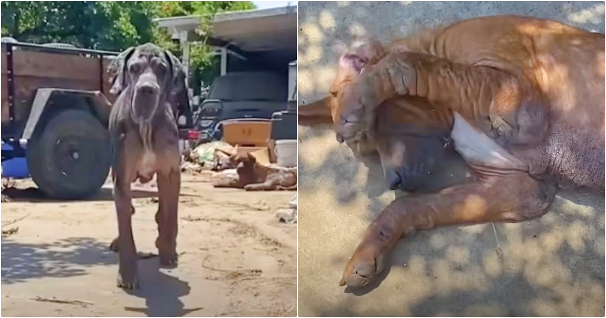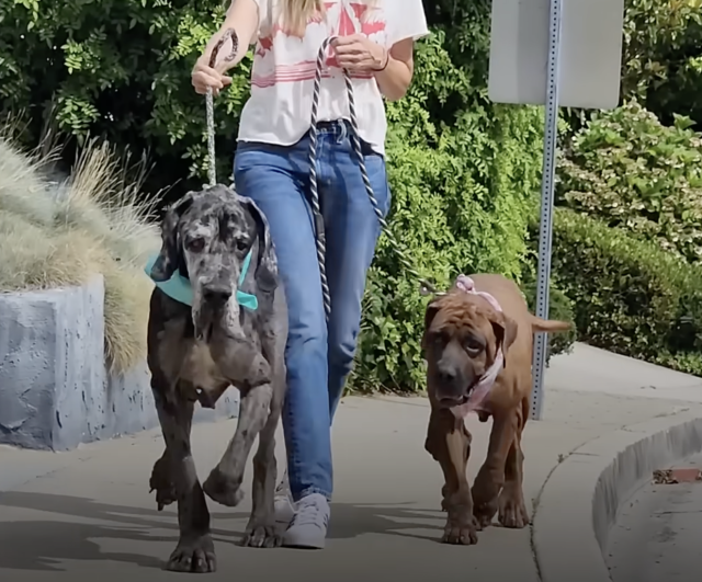 In the aftermath of a devastating house fire, two enormous dogs—a majestic Great Dane named Oma and a gentle Mastiff named Sakura—were found waiting for help.