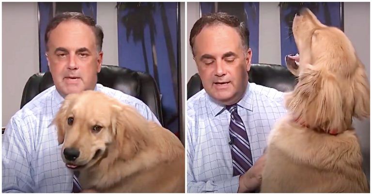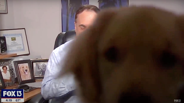 FOX WTVT’s meteorologist Paul Dellegatto was filming a weather segment at his Tampa Bay home when he was unexpectedly, yet adorably interrupted.