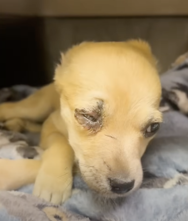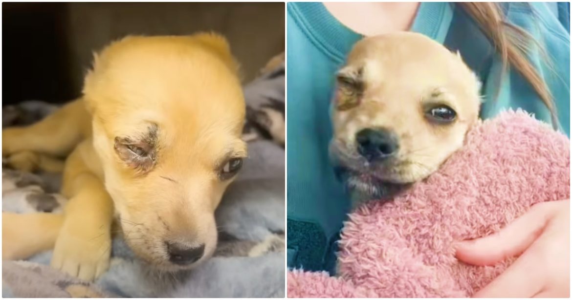 Jack was found on the streets of California in a deeply disturbing state. Severely injured and barely able to move, the puppy had clearly endured brutal mistreatment. His injuries included a shattered eye and a traumatic head injury. Pain etched every inch of his fragile frame.