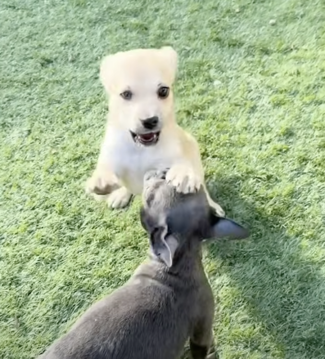 The first tail wag. A cautious sniff. A moment of play. Jack began to trust again, little by little. His eyes started to brighten. He sought comfort in Kayla’s arms and even made friends with the other dogs in her care. Despite everything, his spirit was still alive.