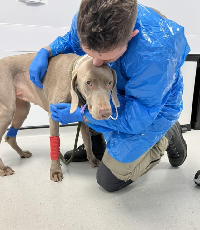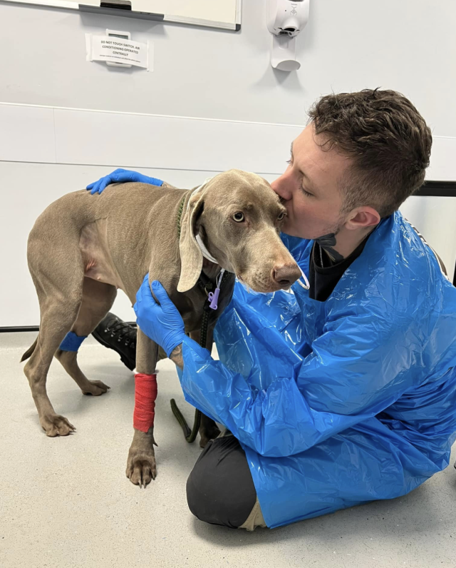 Jaxon Feeley, a podcast host known for his motivational content, shares his life with two cherished Weimaraners—Rocky, the elder, and two-year-old Rambo. Anyone familiar with Weimaraners knows they are typically full of energy and enthusiasm, so it didn’t take long for Jaxon to notice something was off with Rambo. She had become lethargic and started vomiting repeatedly one night. Concerned, he rushed her to an emergency veterinary hospital.