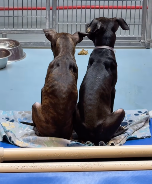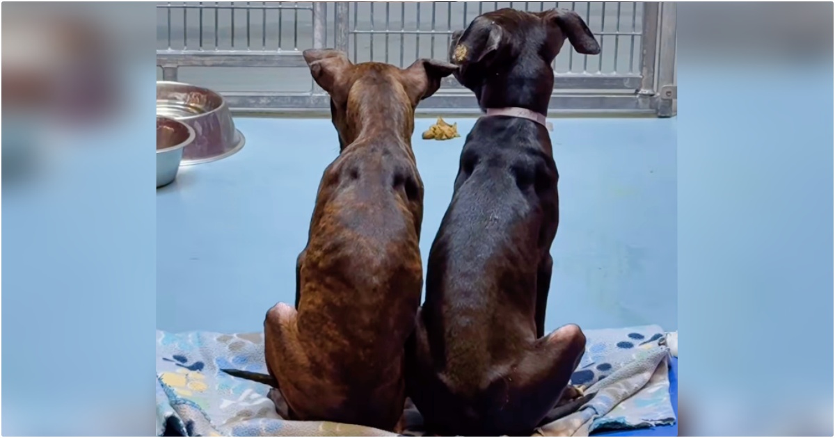 Their silent plea did not go unnoticed. Madeline, a devoted volunteer at the shelter, spotted the pair and was immediately drawn to them. Their frail bodies and exposed ribs told a story of neglect and hardship. They moved in perfect sync, mirroring each other’s mannerisms as if they were reflections of one another.