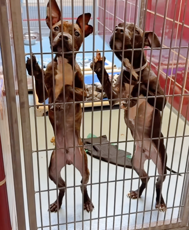 For a brief moment, it seemed like they were safe. The shelter provided them with a roof over their heads, but the harsh truth soon became evident—Bennie and Jett had been added to the euthanasia list. Their chances of survival were slipping away. Desperate for help, the two siblings reached their paws through the metal bars, hoping someone would see them and offer the love they had lost.